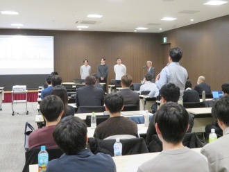 当日は、大学院生24名、協力・関連企業5社、協力行政機関1機関の計30名に加え、大学教員5名が参加し、合計59名が参加しました。学生による成果発表の後には、企業および行政の参加者から専門的かつ実践的な視点による意見や助言が寄せられ、活発な質疑応答と意見交換が行われました。