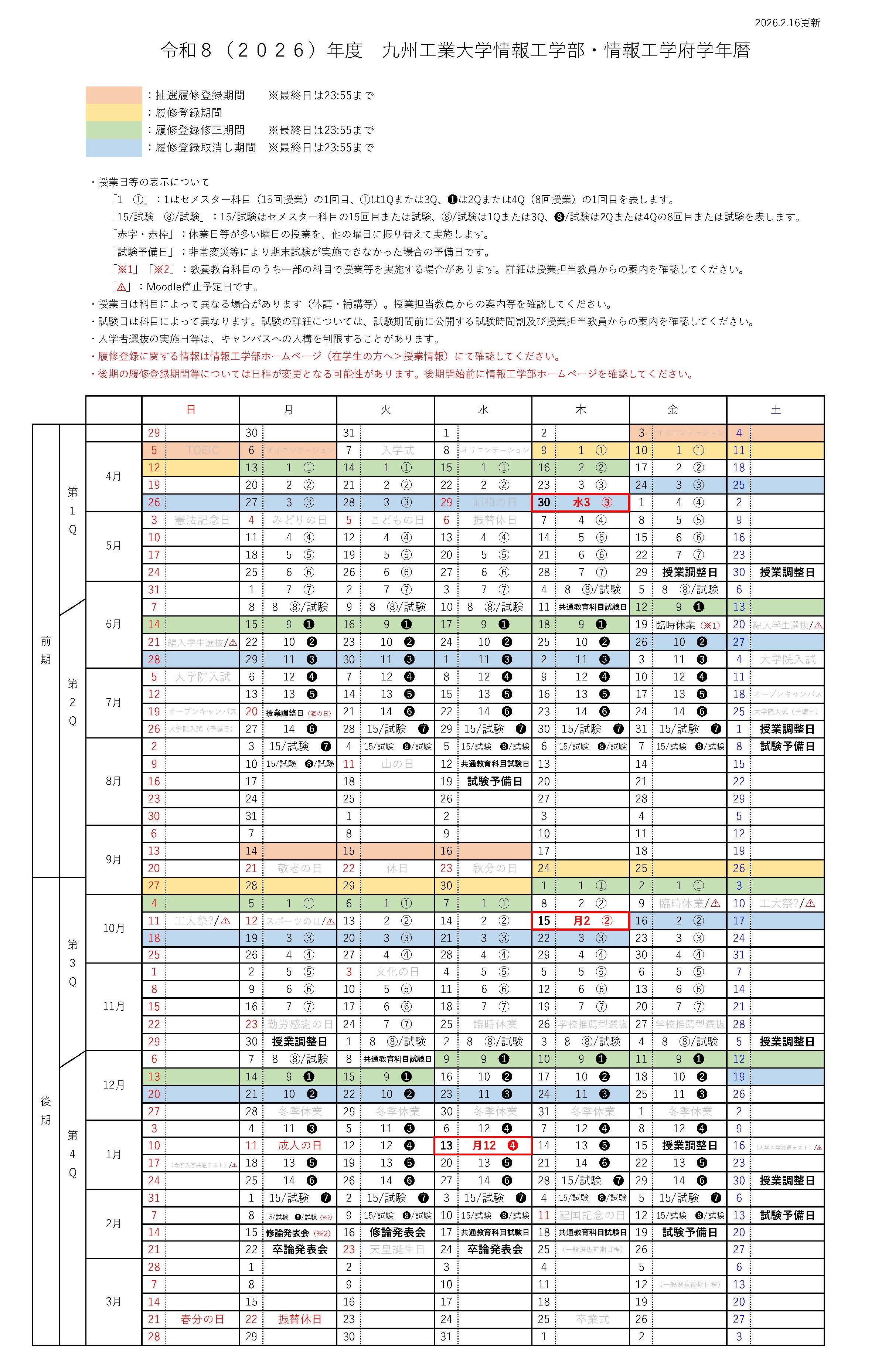 キャンパスカレンダー