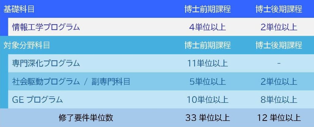 博士後期課程(数理・データサイエンス・AI科目から2単位以上)