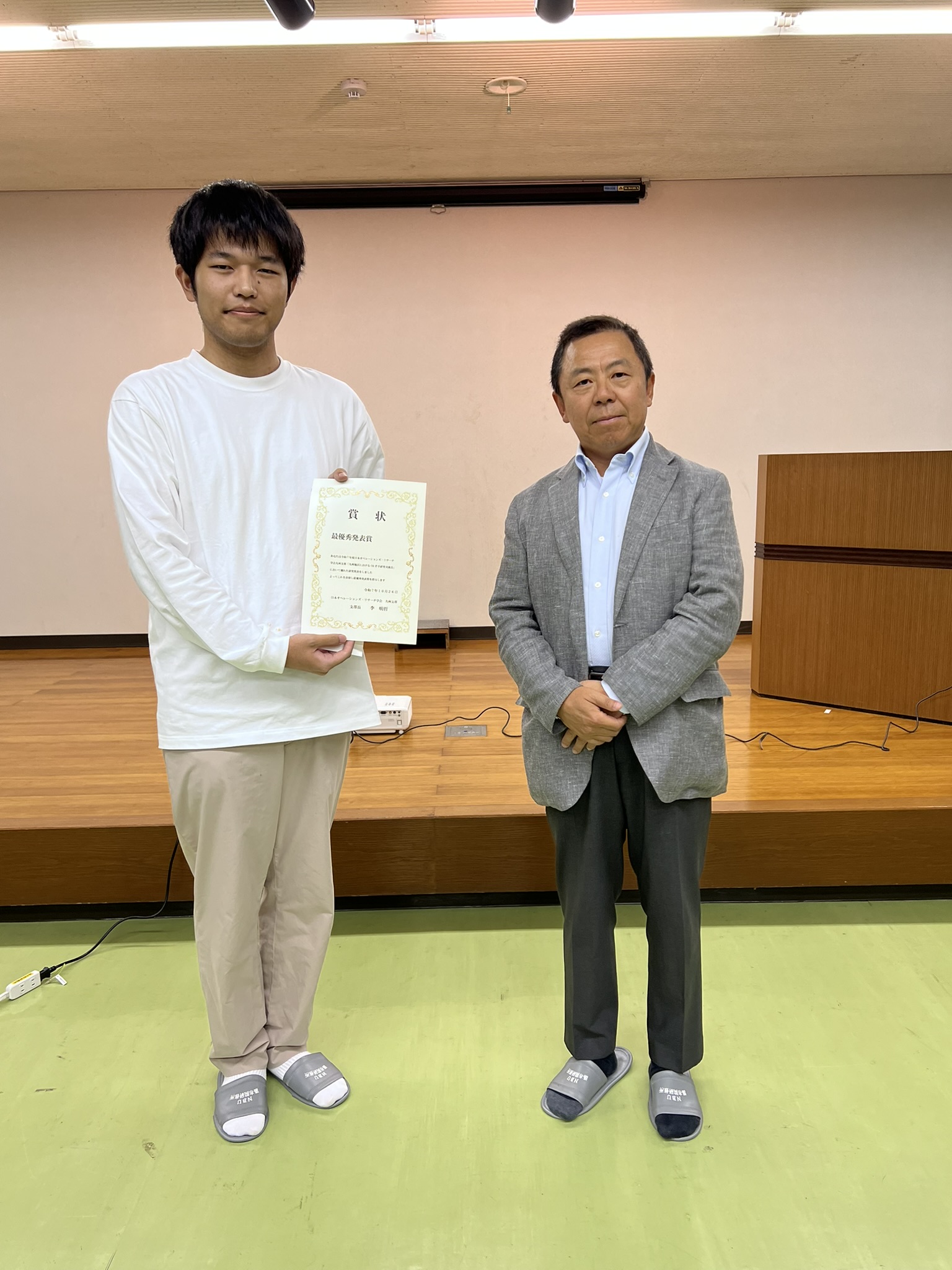 受賞した加藤さん(左)とOR学会九州支部支部長の李 明哲先生(福岡大学・左)